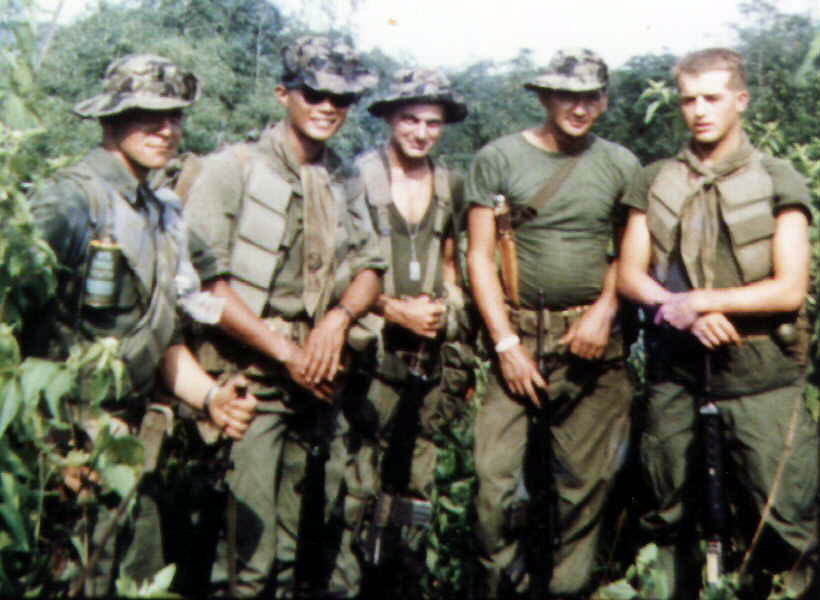 Snoopy Killer Team Photo on Hill 52 LZ. Back Row L to R:Livington, Chong, Hill, Dagan and Ketchmark |